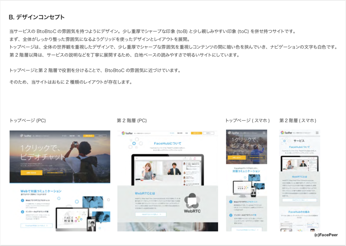 B2BtoC向けビデオチャットプラットフォームを運営するFacePeer様のデザイン周りの全面支援を行っていました。創業期から成熟期にかけて信頼性とわかりやすさのバランスを兼ね備えたUIと見た目の一貫性が全体で保てるような施策も併せて提供していました。