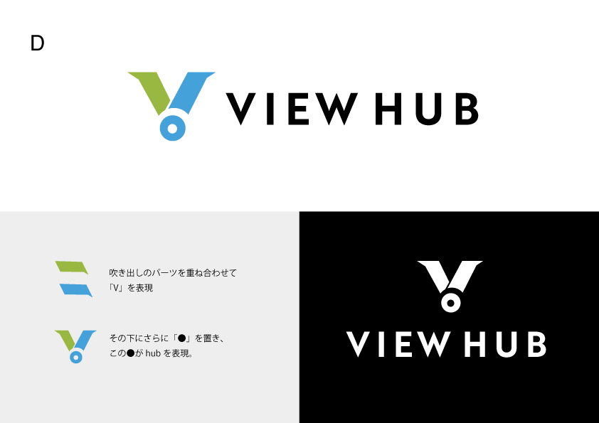 ロゴは、面接者・応募者を●で表現し、線でつなぎ、それをVの形で展開することでHubを表現。プラットフォームらしいしっかりとした雰囲気を目指しました。また、親サービスであるビデオチャットプラットフォーム FaceHubのロゴデザインを踏襲しつつ、今後の類似サービス展開に備えてロゴタイプの最適化も行なっています。 他の候補も合わせて公開いたします。